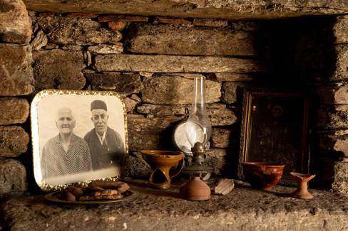 This was one of my favorite small “Farm to Table” photo shoots I have done. Outside of the main building where the cheese is made and stored, one of the old stone family homes still stands. Built from the rock of the island, it is still decorated as it would have been when the family's main focus was livestock and cheese. The rugged house was carved from a rugged landscape, drumming up thoughts of what their lives would have entailed. Those who have visited know the landscape of Ios is a no-frills place. To live here full time would have been an existence of fortitude and hard work.
